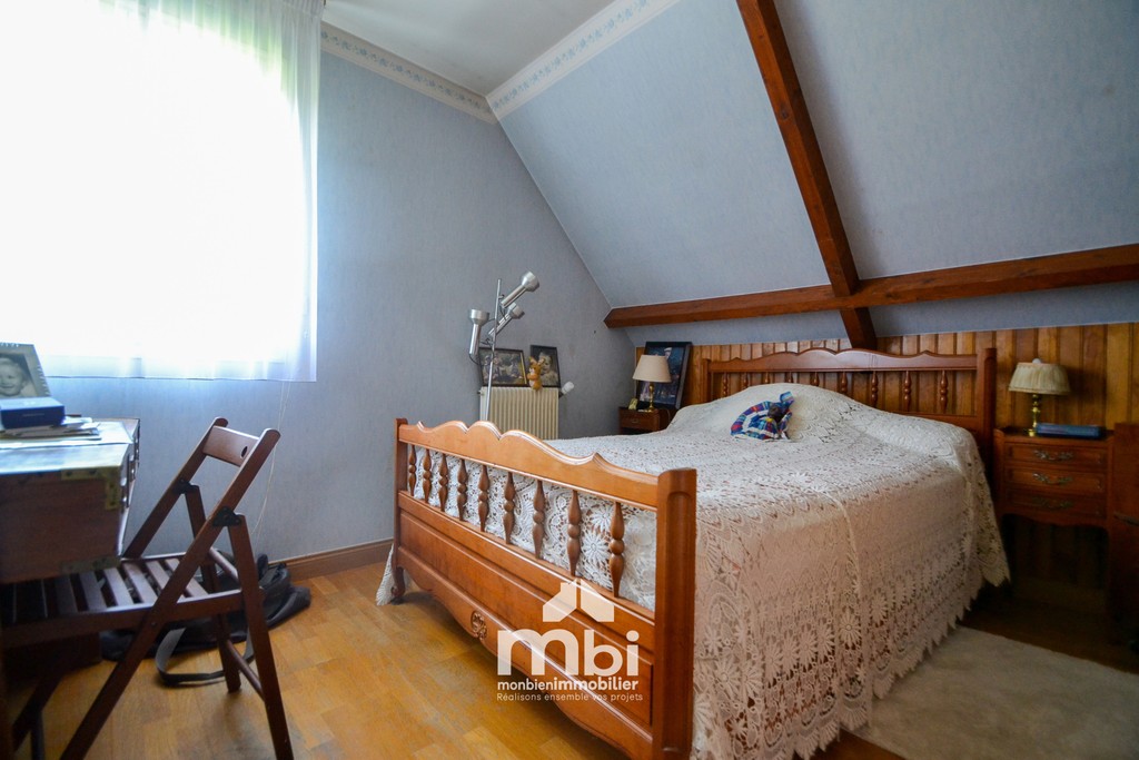 Maison 6 pièces comprenant au rez-de-chaussée : une entrée, un double séjour avec une cheminée, une cuisine séparée et équipée, un couloir avec placards de rangement , une chambre, une salle d'eau, un cellier, un wc avec lave-mains. L'étage se compose d'un palier, 3 chambres dont une suite parentale avec salle de bains privative, ainsi qu'une deuxième salle de bains et un wc. La maison dispose également d'un garage avec porte électrique et de volets roulants électrique pour plus de confort. La…